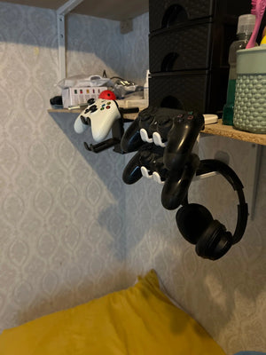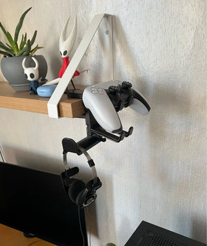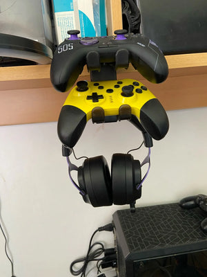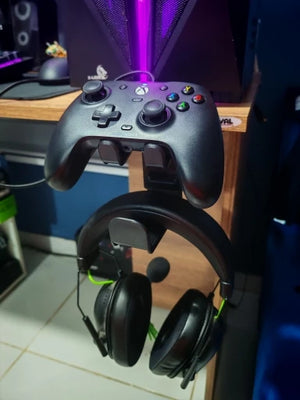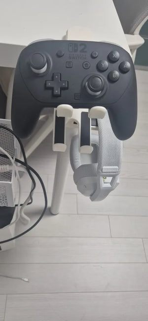 Mounts to any desk edge to free up tabletop room instantly. No drilling, no tools. Your headset and controller stay off the surface, organized and easy to grab before a match.