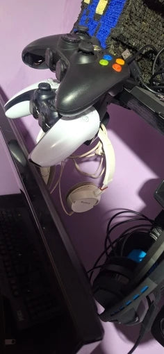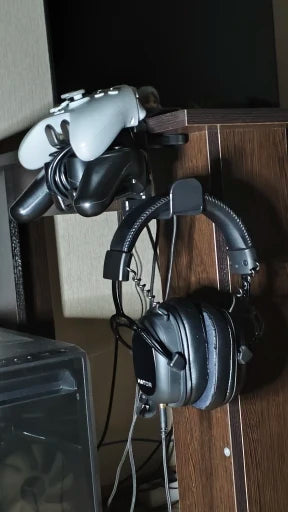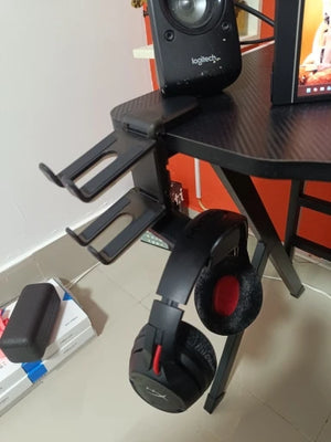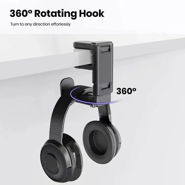 Keep desk clutter-free and gear ready with a sturdy rotating clamp that holds headsets and controllers reliably.